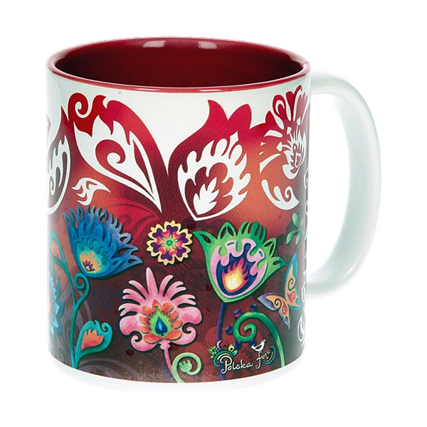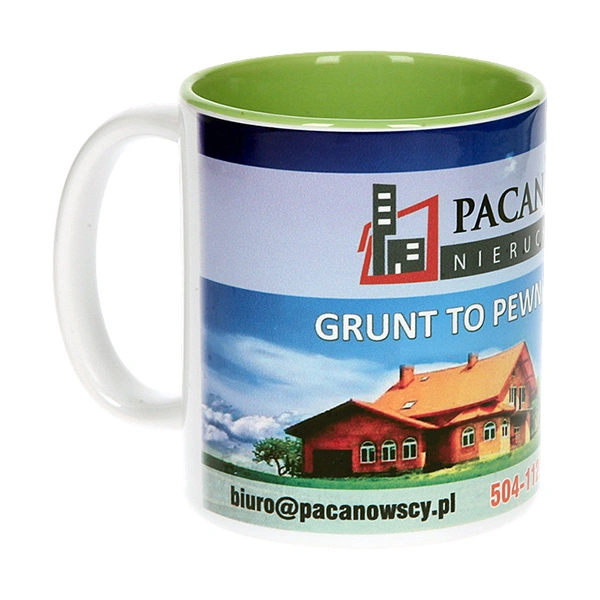 Kubek ceramiczny z nadrukiem full color metodą sublimacji.