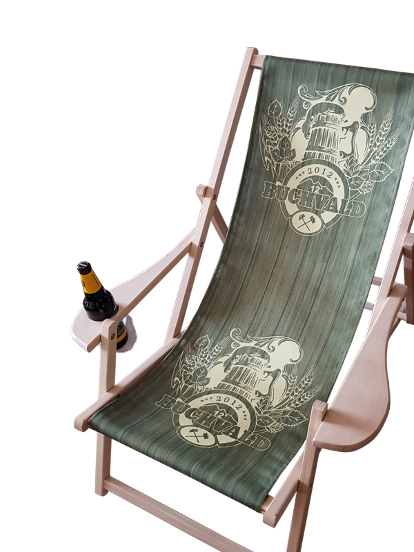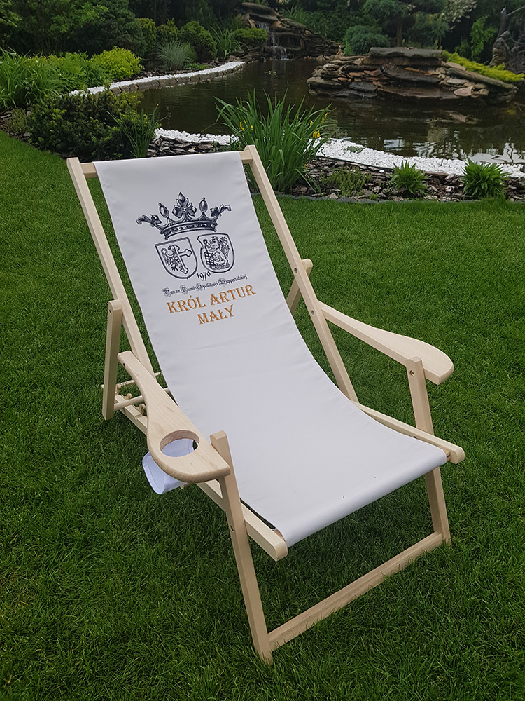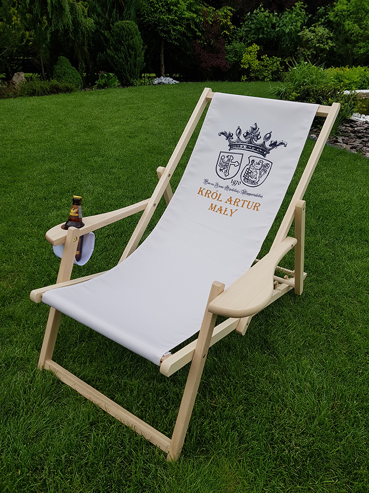 Metoda nadruku na leżaku z otworem na butelkę w podłokietniku